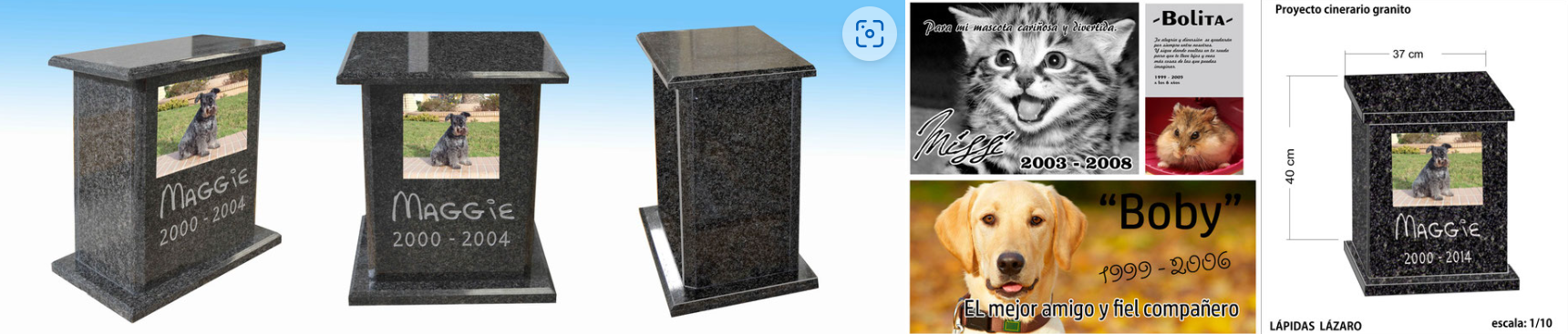 Mini lápidas de nicho o monolito para suelo o terrenos particulares, para mascotas, nuestros fieles amigos que siempre están a nuestro lado, ahora ya pueden ser recordados con lápidas o monolitos funerarios en diferentes acabados y 100% personalizables.